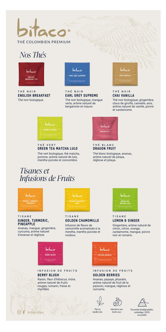 Kit Introduction thes & infusions Bitaco 10 références X 10 unités + boite en bois